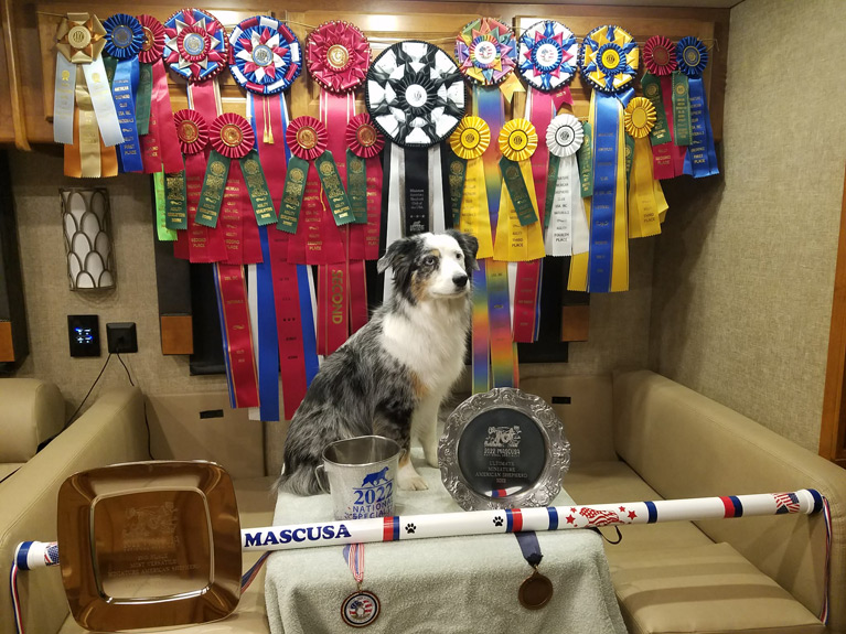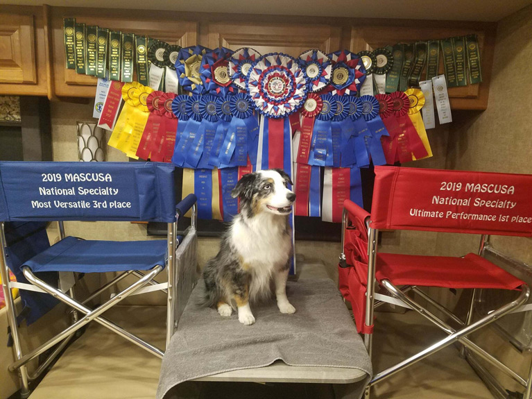 The Most Versatile Miniature American Shepherd (MV-MAS) and Ultimate Performance Miniature American Shepherd (UP-MAS) competition is offered at the MASCUSA National Specialty and recognizes those dogs that can do it all.